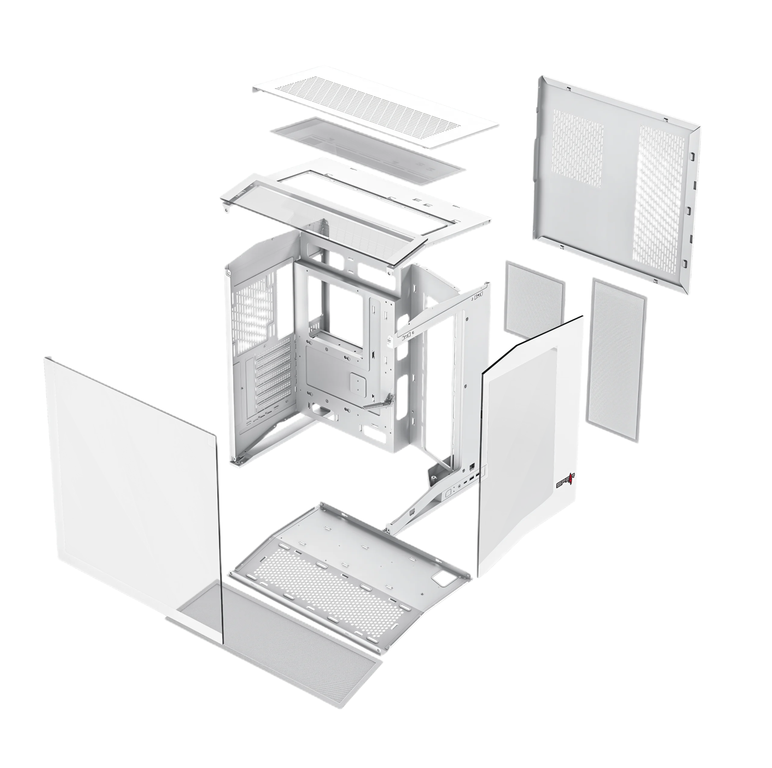 • Three-Sided Tempered Glass: Panoramic view from front, side, and top side panel.